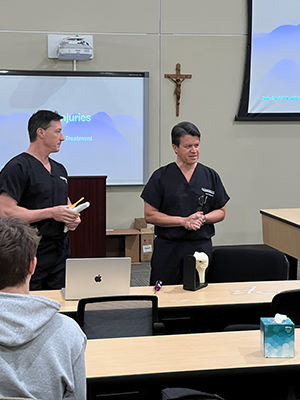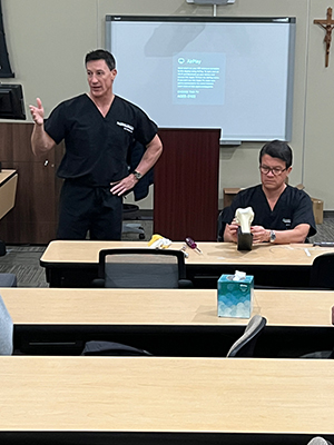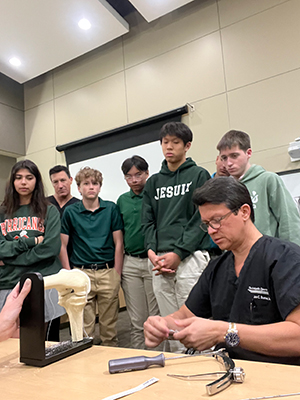 Drs. Palumbo and Bustos sharing orthopedic insights at Strake Jesuit Preparatory. From demonstrating ACL reconstruction with Stryker implants to discussing medical career paths, it was a privilege to engage with these bright future leaders.